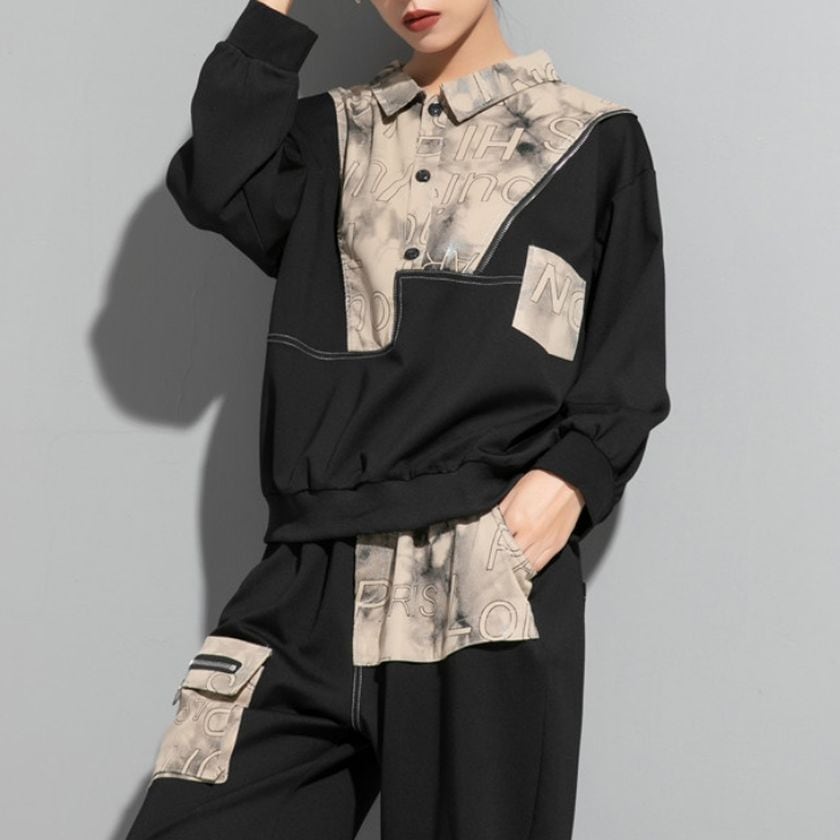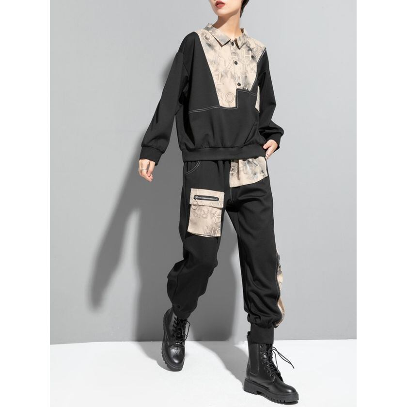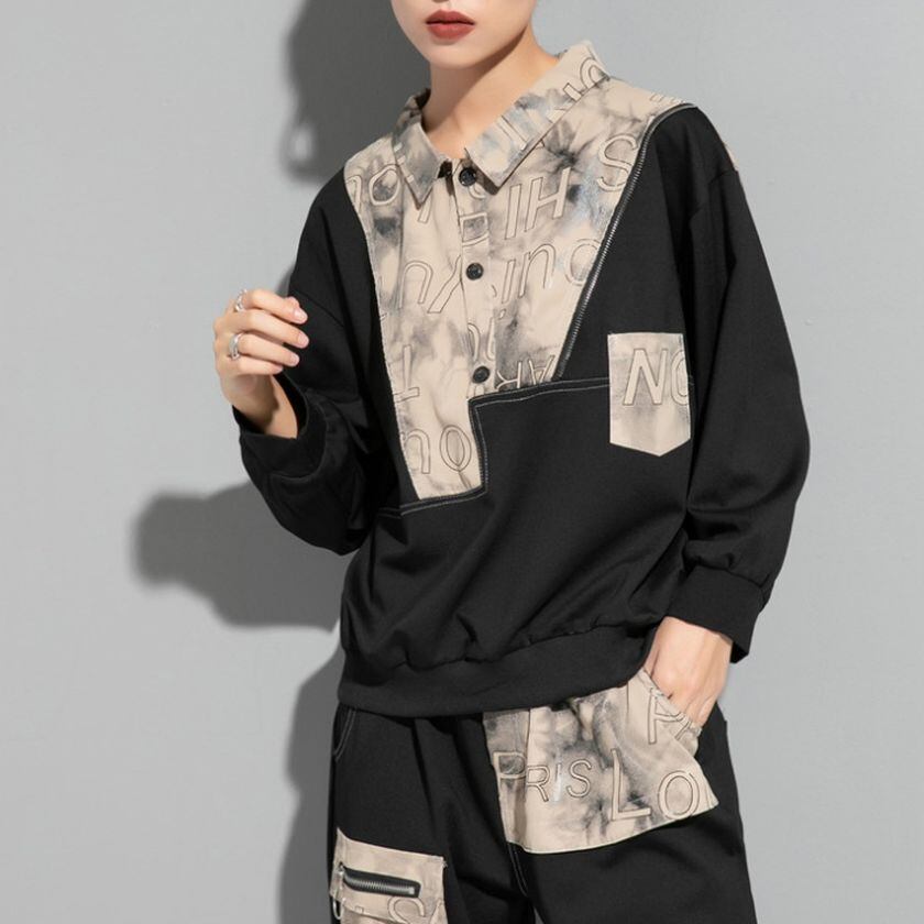 POLO襟不規則スプライシングセットアップ 2color ST0177